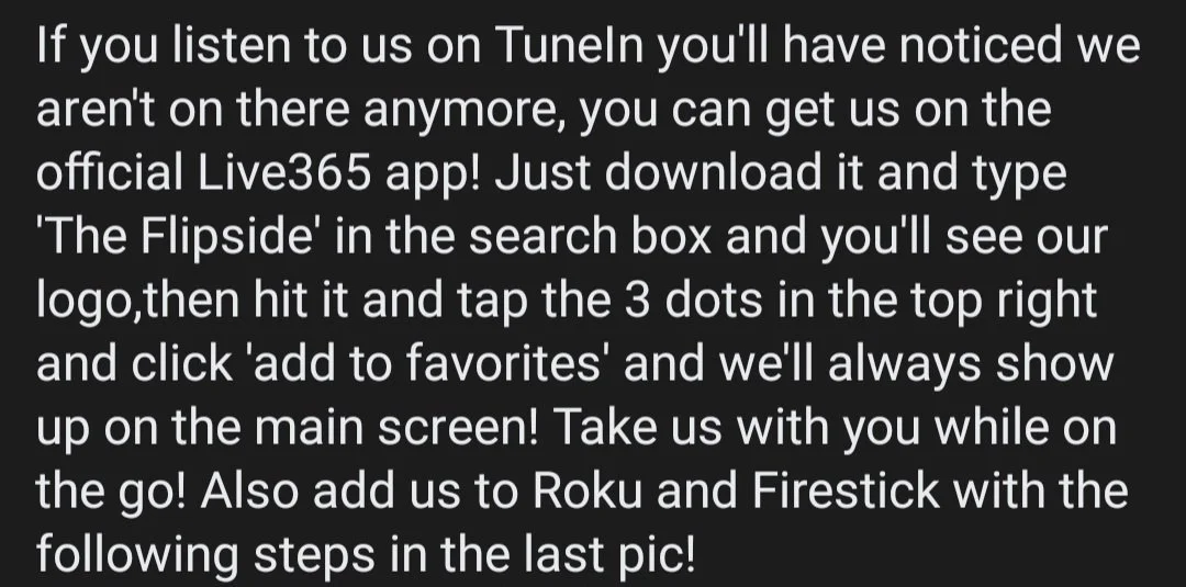 Say “The Flipside” when the Alexa Live365 asks for a station to play!